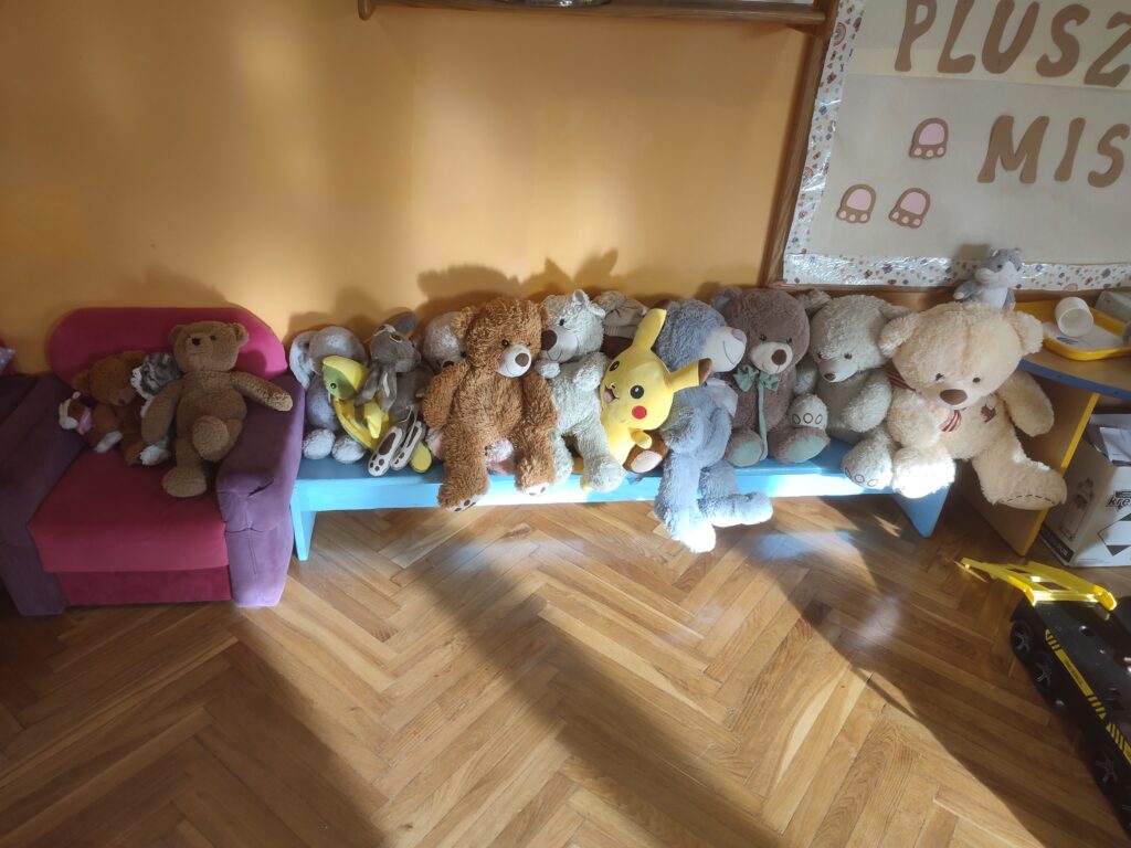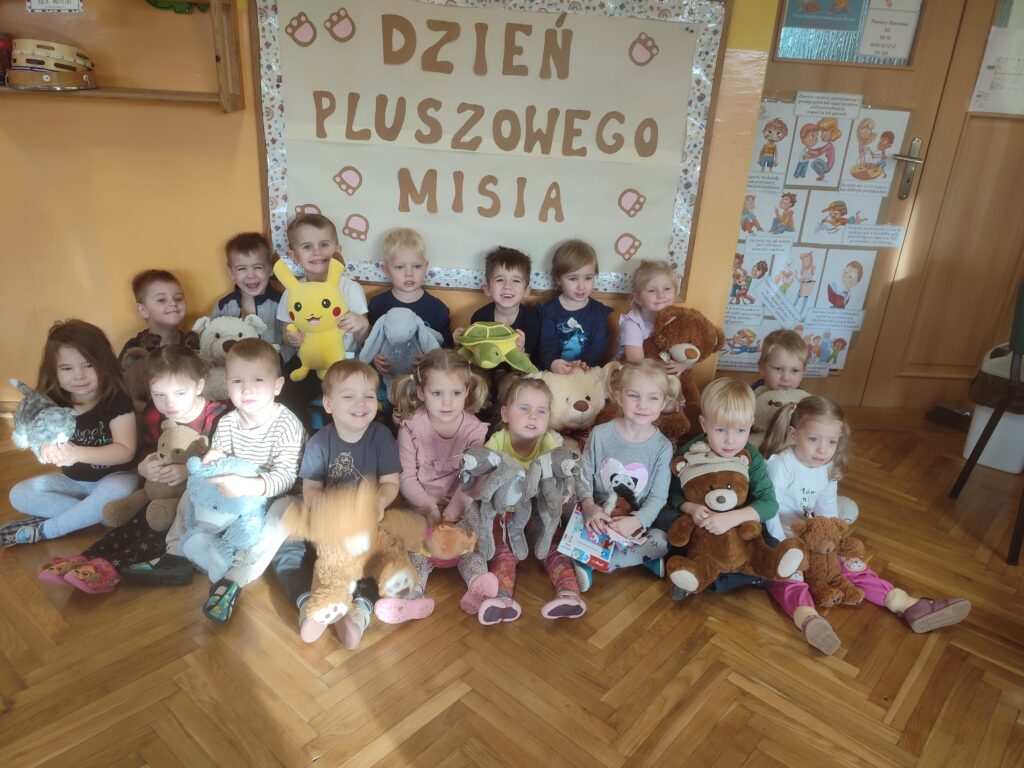 Marcheweczki świętowały dzień Misia z Misiem Brunem który odwiedza ich w domu i towarzyszy czytaniu książek i wspólnej zabawie. Bruno przygotował dla nich gimnastykę i poszukiwanie miodku.